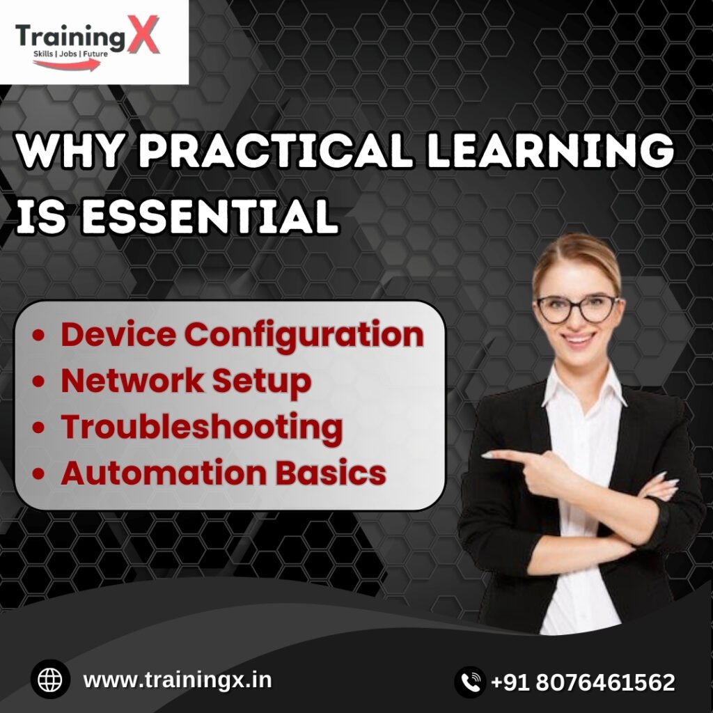 Starting a career in networking becomes much easier when you choose the right CCNA Course in Noida Sector 15. Today, companies rely on strong networks to manage communication, data, and security, which makes networking skills highly valuable. This course helps you understand how networks work and how devices connect in real environments. With expert guidance and practical training, you build confidence from day one. This is why TrainingX focuses on simple explanations, hands-on labs, and real-world skills. Whether you are a beginner or looking to upgrade your career, this course gives you the perfect start toward a successful IT future.